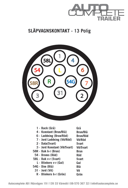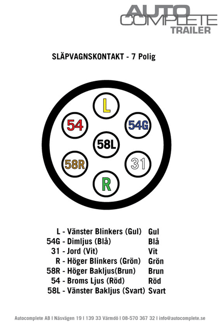 Klicka på kontakterna till höger så ser du hur 7-polig respektive 13-polig släpvagnskontakt ska kopplas in.